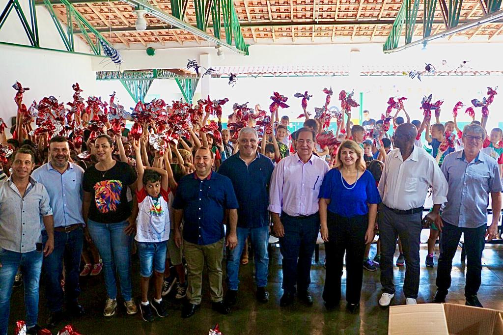 A programação de entrega teve início na Escola Sônia Teixeira Paiva e prosseguiu nas quatro escolas mantidas pelo município na sede e nos distritos.