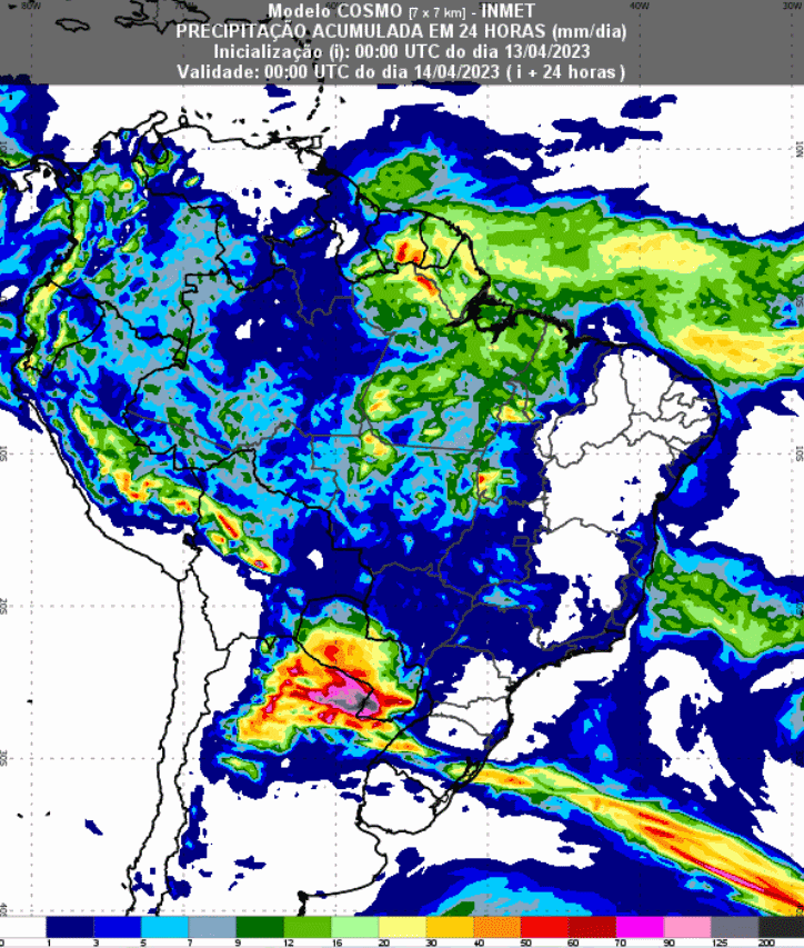 Logo após a passagem da chuva, os modelos mostram queda nas temperaturas no Sul do Brasil. Segundo as previsões do Inmet, a máxima deve registrar declínio de 33ºC para 19ºC já nos próximos dias.