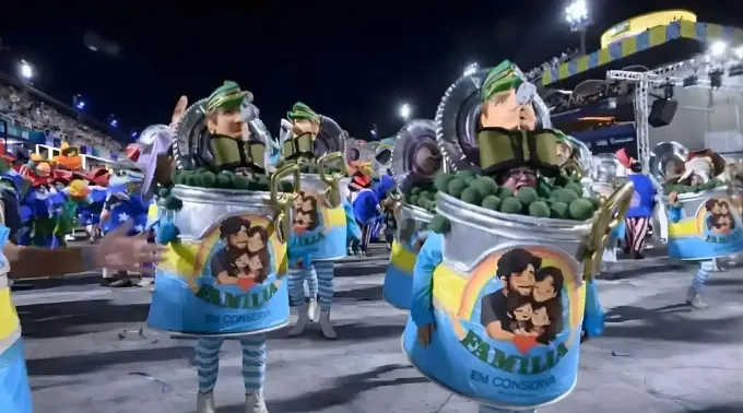 “O movimento em ascensão no Brasil passou a se associar, dentro do campo político, aos seguidores da extrema direita”, disse a escola de samba destacando que “a fantasia traz uma lata de conserva, com uma defesa da dita família tradicional”, e “na cabeça dos componentes, há uma variação de elementos para enumerar os grupos que levantam a bandeira do neoconservadorismo. São eles: os representantes do agronegócio, os defensores da Ditadura Militar e os grupos religiosos evangélicos”.