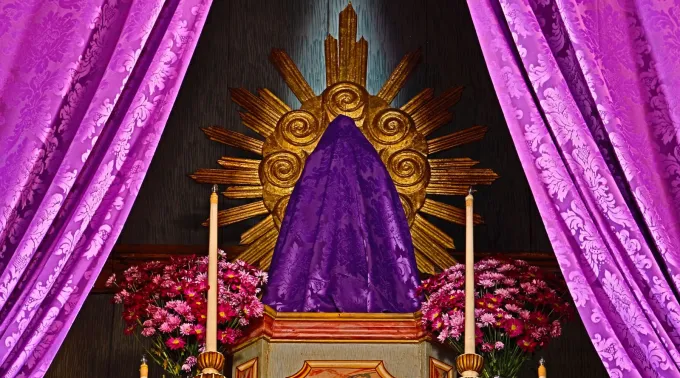 Um costume em muitas igrejas durante a Quaresma é cobrir as imagens e os crucifixos com um pano roxo. É tradição da velatio, latim para “velação”. O objetivo, segundo o padre Rafhael Silva Maciel, da arquidiocese de Fortaleza (CE), é focar a atenção em Jesus.